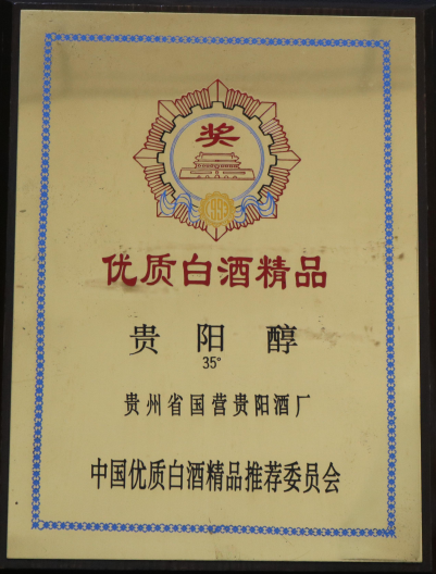 贵阳醇35°——1993年中国优质白酒精品推荐委员会“优质白酒精品”