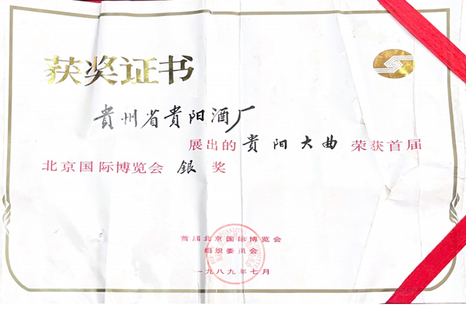 贵阳大曲——1989年首届北京国际博览会“银奖”