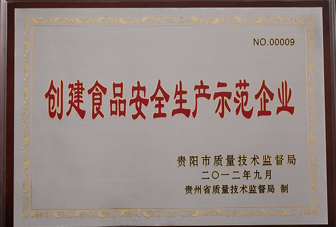 2012年贵州省创建食品安全生产示范企业